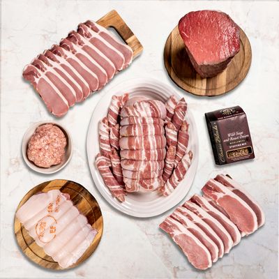 A complete festive selection from our Cotswold farm - grass-fed beef, free-range turkey, gammon, and handmade pigs in blankets, all prepared by our butchers. Perfect for a generous Christmas table and Boxing Day leftovers.
